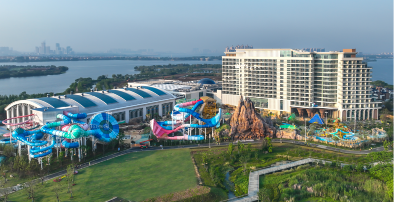 Situated by Houguan Lake in Wuhan's Caidian District, this project covers a 703-acre ecological landscape with a total investment of 2.2 billion RMB. It integrates diverse offerings, including an indoor all-age, constant-temperature water park, an outdoor water park, a comprehensive children's park, a high-end eco-resort hotel, themed dining, a business conference center, and educational facilities for eco-science. It aims to become the largest all-age, all-season, one-stop water-themed family resort in Central China, injecting powerful momentum into Wuhan's development as a world-renowned cultural tourism destination. The park's highlights include the innovative introduction of the latest Super Magic Space-Time Combination Slide, the nation's first artificial banyan treehouse, Central China's first straight-body slide rapids river, and unique boat houses and pumpkin houses, offering visitors a brand-new experience in leisure, high-end business, and cultural consumption.