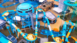 Utilizing a rare 360-degree circular structure with a futuristic dream-blue color palette, this slide is equipped with holographic projection technology to construct a realm where virtuality and reality intertwine. From a distance, it looks like an "Eye of the Future" suspended in mid-air. Riders speed along the giant circular track, experiencing the thrilling swing of a "water pendulum" under intense centrifugal force. As the rushing water splashes against their faces amidst echoing screams, visual impact and physical limits merge into one, igniting a dual sensory frenzy.