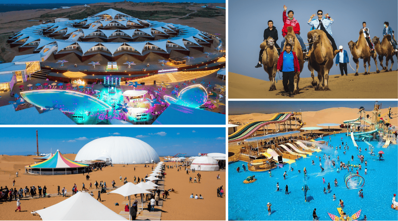 As China's only desert water park scenic area, this project combines a water park, sightseeing, leisure vacation, and unique accommodations (Lotus Hotel, Desert Cabins). Through the linkage of sand and water and a multi-island layout, it forms an all-season desert resort destination offering "Water Play + Sand Play + Accommodation + Sightseeing."